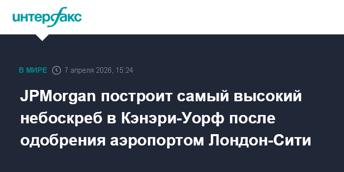 Москва. 7 апреля. INTERFAX.RU - Американский банк JPMorgan Chase & Co. построит один из самых высоких в Европе офисных небоскребов в лондонском деловом районе Кэнэри-Уорф после получения разрешения от руководства находящегося поблизости аэропорта Лондон-Сити, пишет газета Financial Times со ссылкой на источники.