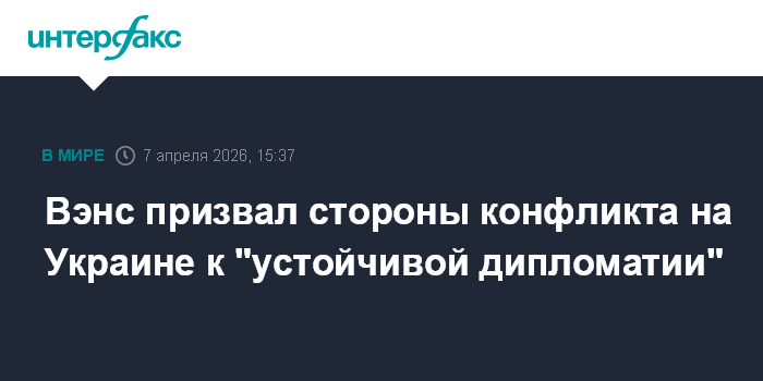 Москва. 7 апреля. INTERFAX.RU - Вице-президент США Джей Ди Вэнс заявил, что единственным способом завершения конфликта на Украине являются дипломатические усилия и призвал стороны к дальнейшим переговорам.