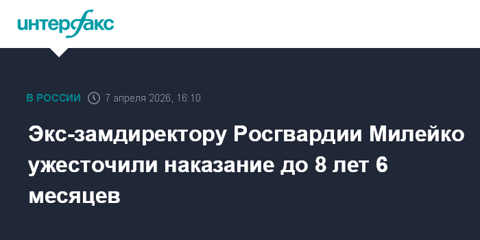 Экс-замдиректору Росгвардии Милейко ужесточили наказание до 8 лет 6 месяцев