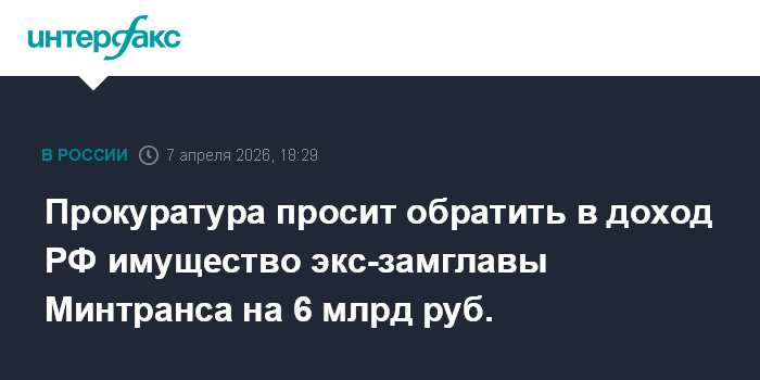 Прокуратура просит обратить в доход РФ имущество экс-замглавы Минтранса на 6 млрд руб.