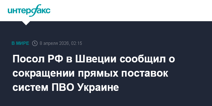 Посол РФ в Швеции сообщил о сокращении прямых поставок систем ПВО Украине