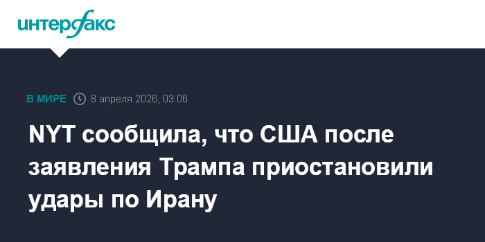 NYT сообщила, что США после заявления Трампа приостановили удары по Ирану