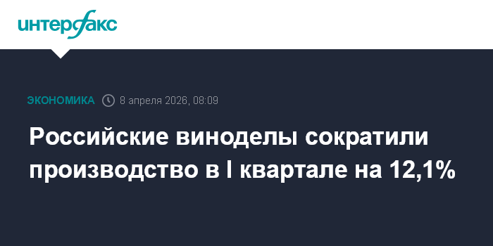 В январе-марте 2026 года виноделы произвели 7,3 млн декалитров (дал) виноградного вина, что на 12,1% меньше, чем годом ранее, сообщил Росалкогольтабакконтроль. Выработка игристых (шампанских) вин снизилась на 14,3%, до 3,2 млн дал, ликерных - на 22,9%, до 267,1 тысячи дал.