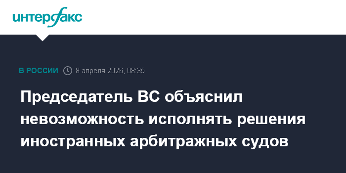 Москва. 8 апреля. INTERFAX.RU - Председатель Верховного суда России Игорь Краснов объяснил причины фактической невозможности исполнить решения арбитражных судов иностранных государств.