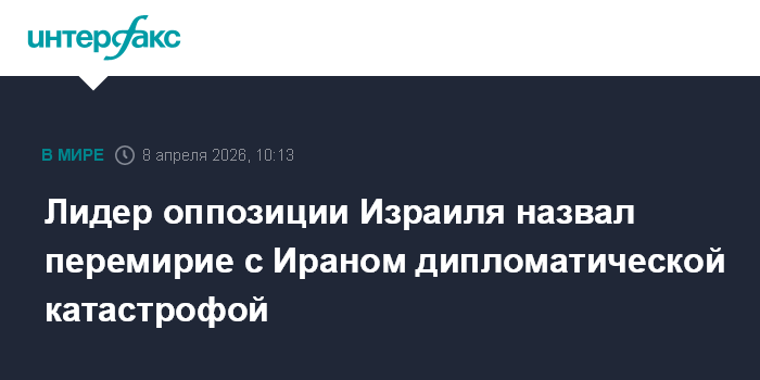 Лидер оппозиции Израиля назвал перемирие с Ираном дипломатической катастрофой