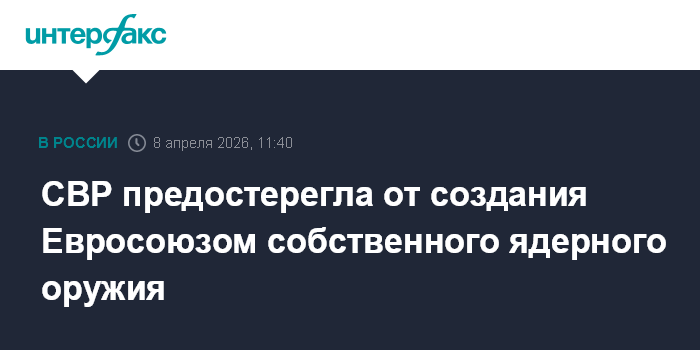 Москва. 8 апреля. INTERFAX.RU - США и другим странам необходимо не допустить создания Евросоюзом ядерного оружия и нового витка глобальной гонки ядерных вооружений, заявили в пресс-бюро Службы внешней разведки (СВР) России.