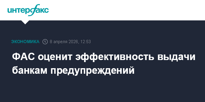 Москва. 8 апреля. INTERFAX.RU - Федеральная антимонопольная служба (ФАС) РФ оценит эффективность выдачи финансовым организациям предупреждений при выявлении признаков нарушения законодательства о защите конкуренции, так как этот инструмент не всегда работает, заявил заместитель руководителя ФАС Антон Тесленко.
