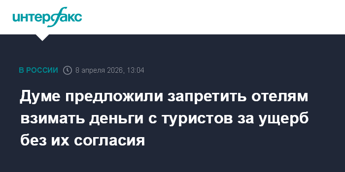 Москва. 8 апреля. INTERFAX.RU - В Госдуму внесен проект закона, предлагающий ограничить возможность списания денег с туристов за причиненный гостиницам ущерб без согласия владельцев карт.