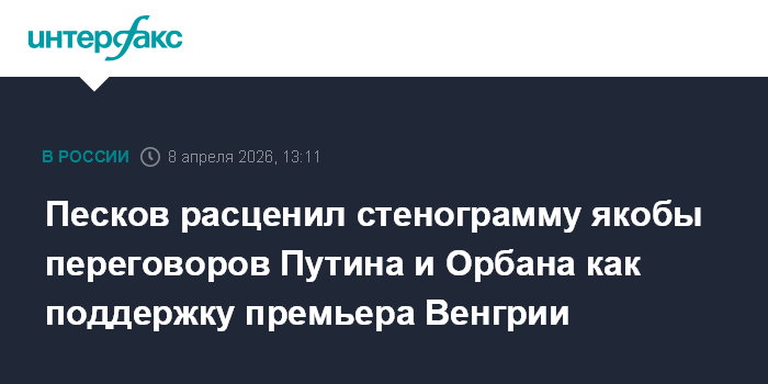 Песков расценил стенограмму якобы переговоров Путина и Орбана как поддержку премьера Венгрии