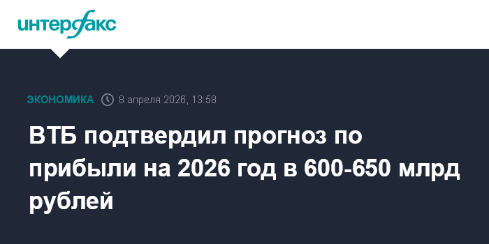 ВТБ подтвердил прогноз по прибыли на 2026 год в 600-650 млрд рублей