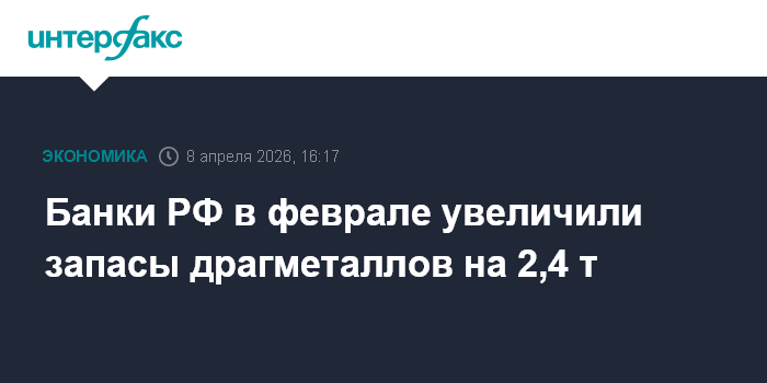 Москва. 8 апреля. INTERFAX.RU - Запасы драгметаллов в банках РФ на начало марта 2026 года оценивались в 861 млрд рублей, говорится в материалах Банка России.
