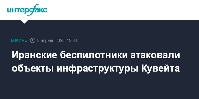 Москва. 8 апреля. INTERFAX.RU - Ряд объектов инфраструктуры Кувейта подвергся атакам беспилотников со стороны Ирана, сообщает в среду министерство внутренних дел страны.