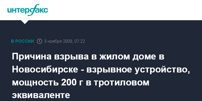 Причина взрыва в жилом доме в Новосибирске - взрывное устройство, мощность 200 г в тротиловом эквиваленте