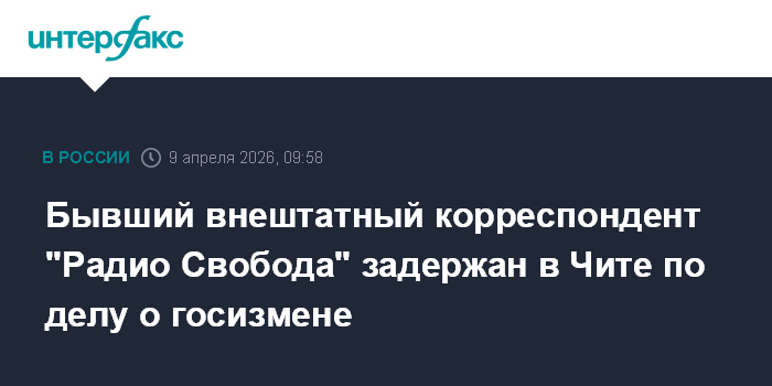 Москва. 9 апреля. INTERFAX.RU - ФСБ сообщила о задержании в Чите бывшего внештатного корреспондента признанного иноагентом и нежелательной организацией "Радио Свобода" по делу о сотрудничестве со Службой безопасности Украины (СБУ).