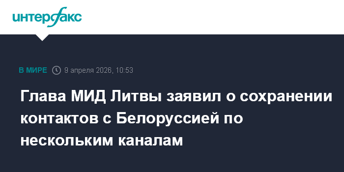 Москва. 9 апреля. INTERFAX.RU - Министр иностранных дел Литвы Кястутис Будрис заявил радио Ziniu radijas, что связь с Белоруссией осуществляется по нескольким каналам в зависимости от ситуации.