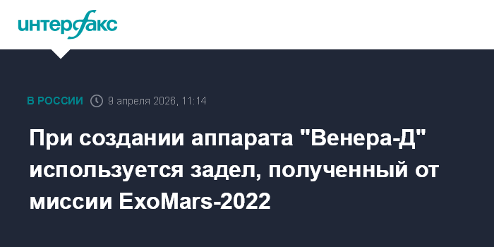 При создании аппарата "Венера-Д" используется задел, полученный от миссии ExoMars-2022