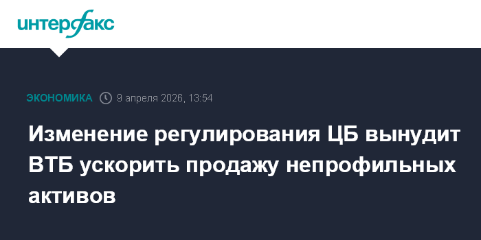Изменение регулирования ЦБ вынудит ВТБ ускорить продажу непрофильных активов