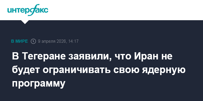 Москва. 9 апреля. INTERFAX.RU - Тегеран не будет ограничивать обогащение урана, как бы этого ни требовали противники страны, заявил в четверг глава Организации по атомной энергии Ирана (ОАЭИ) Мохаммад Эслами.