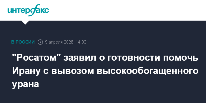 Москва. 9 апреля. INTERFAX.RU - "Росатом" готов помочь решить проблему вывоза высокообогащенного урана из Ирана, предложения Москвы остаются "на столе", заявил гендиректор "Росатома" Алексей Лихачев.