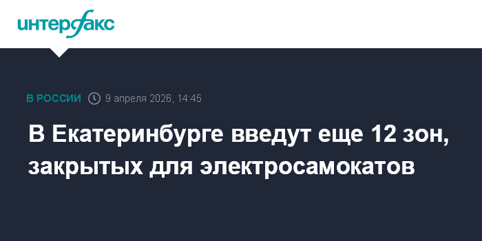 Москва. 9 апреля. INTERFAX.RU - В Екатеринбурге в 2026 году количество зон, в которых запрещено движение средств индивидуальной мобильности (СИМ), увеличится с десяти до 22, сообщил на пресс-конференции начальник отдела организации дорожного движения и развития улично-дорожной сети горадминистрации Владимир Галаков.