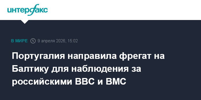Москва. 9 апреля. INTERFAX.RU - Португалия направила фрегат в Балтийское море для наблюдения за деятельностью российского военно-морского флота и военной авиации, сообщила пресс-служба португальских ВМС.
