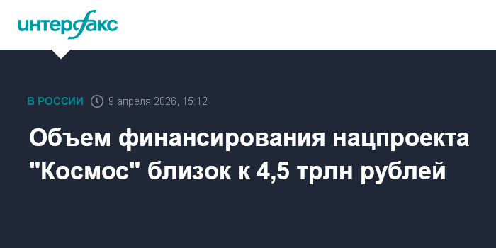 Объем финансирования нацпроекта "Космос" близок к 4,5 трлн рублей