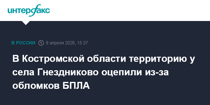 Москва. 9 апреля. INTERFAX.RU - В Костромской области у села Гнездниково Солигаличского района нашли обломки БПЛА, территорию там оцепили, сообщил губернатор региона Сергей Ситников.