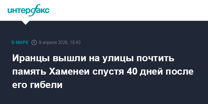 Москва. 9 апреля. INTERFAX.RU - Несколько миллионов иранцев в четверг принимают участие в шествиях, чтобы отдать дань памяти погибшему 40 дней назад верховному лидеру Ирана Али Хаменеи, сообщает агентство Tasnim.
