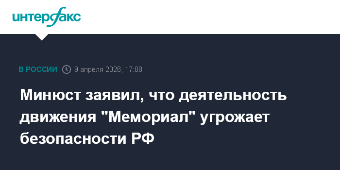 Минюст заявил, что деятельность движения "Мемориал" угрожает безопасности РФ
