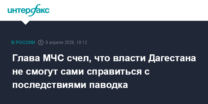 Москва. 9 апреля. INTERFAX.RU - Глава МЧС РФ Александр Куренков считает, что масштабы дождевого паводка, обрушившегося на Дагестан, не позволяют властям региона самостоятельно справиться с последствиями ЧС.