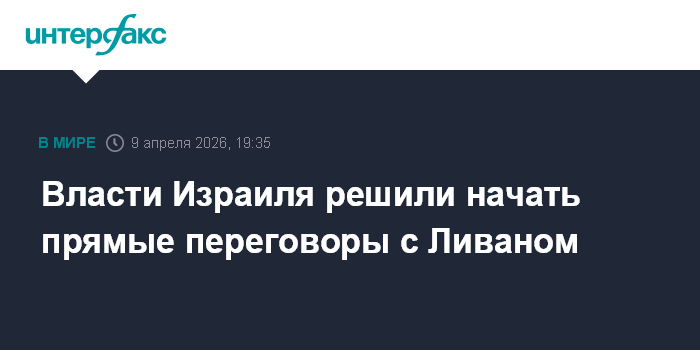 Москва. 9 апреля. INTERFAX.RU - Израильский премьер Биньямин Нетаньяху в четверг заявил, что в связи с запросами Ливана начать прямые переговоры власти Израиля приняли решение пойти на такой шаг.