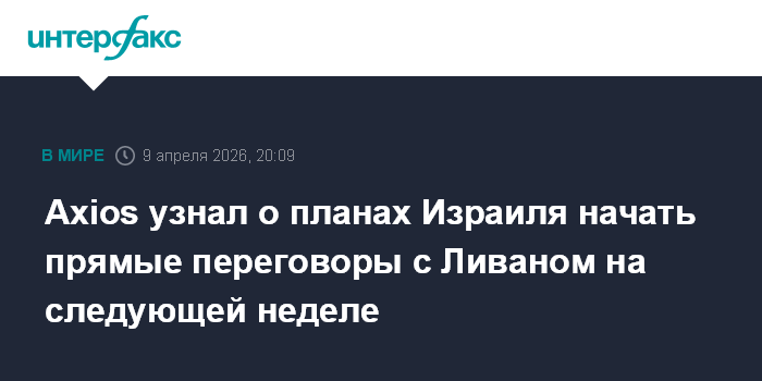 Москва. 9 апреля. INTERFAX.RU - Израиль собирается приступить к прямым переговорам с Ливаном на следующей неделе, сообщает в четверг Axios со ссылкой на источник.