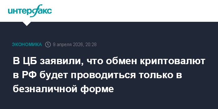 В ЦБ заявили, что обмен криптовалют в РФ будет проводиться только в безналичной форме