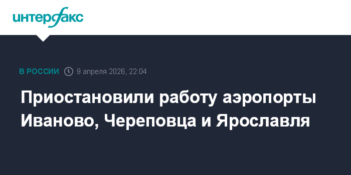 Москва. 9 апреля. INTERFAX.RU - Аэропорты Иваново, Череповца и Ярославля временно не принимают и не выпускают самолеты, сообщили в Росавиации.