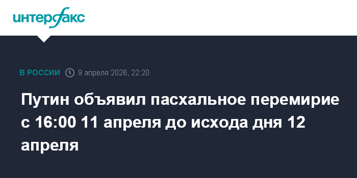Путин объявил пасхальное перемирие с 16:00 11 апреля до исхода дня 12 апреля