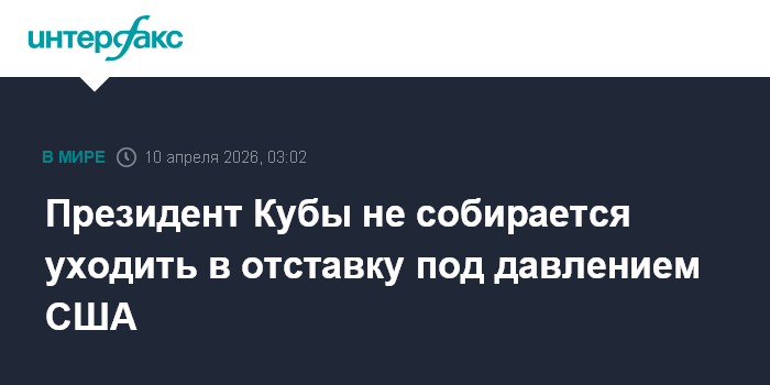 Москва. 10 апреля. INTERFAX.RU - Президент Кубы Мигель Диас-Канель заявил, что не уйдет в отставку под давлением Вашингтона.