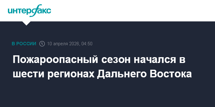 Москва. 10 апреля. INTERFAX.RU - Пожароопасный сезон начался в шести дальневосточных регионах - Бурятии, Забайкальском, Приморском и Хабаровском краях, Амурской области, Еврейской автономной области, сообщила пресс-служба полпреда президента РФ в ДФО.