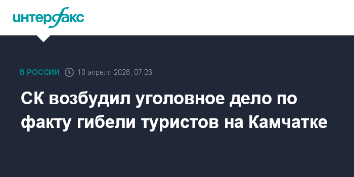 Москва. 10 апреля. INTERFAX.RU - Следователи на Камчатке возбудили уголовное дело по факту пропажи группы туристов, двое из которых найдены мертвыми, сообщает Следственное управление СКР по региону в пятницу.