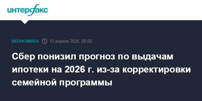 Сбер понизил прогноз по выдачам ипотеки на 2026 г. из-за корректировки семейной программы
