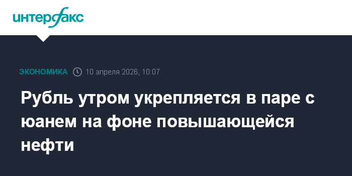 Москва. 10 апреля. INTERFAX.RU - Китайский юань слабеет на Московской бирже при открытии торгов в пятницу, рубль укрепляется на фоне подрастающей нефти.