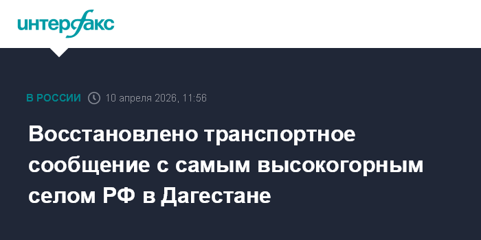 Восстановлено транспортное сообщение с самым высокогорным селом РФ в Дагестане