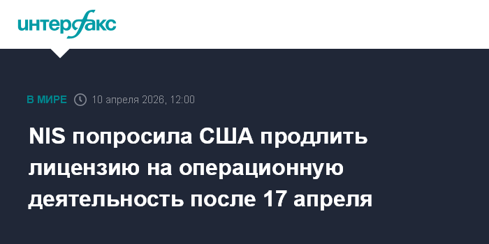 NIS попросила США продлить лицензию на операционную деятельность после 17 апреля
