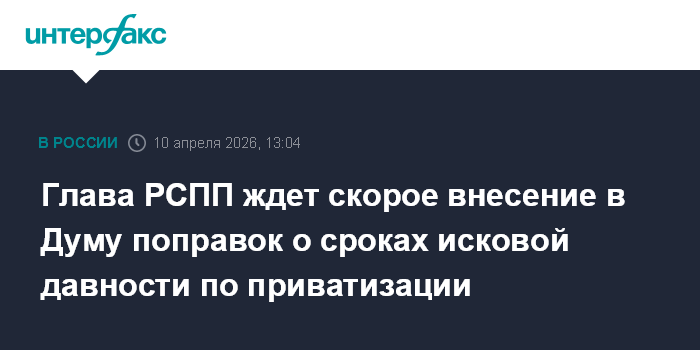 Глава РСПП ждет скорое внесение в Думу поправок о сроках исковой давности по приватизации