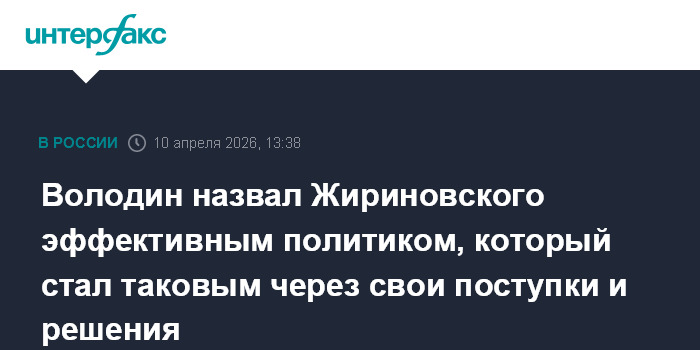 Москва. 10 апреля. INTERFAX.RU - Эффективность политики обеспечивают сильные личности, каким был Владимир Жириновский, заявил председатель Госдумы Вячеслав Володин.