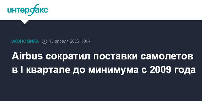 Москва. 10 апреля. INTERFAX.RU - Европейский авиастроительный концерн Airbus в первом квартале 2026 года поставил 114 самолетов 46 клиентам по всему миру.