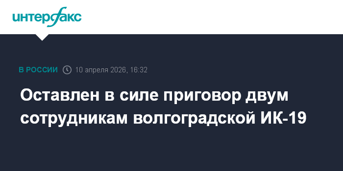 Москва. 10 апреля. INTERFAX.RU - Волгоградский областной суд оставил в силе приговор двум бывшим сотрудникам исправительной колонии №19, осужденным за халатность, которая привела к захвату заложников и гибели их сослуживцев в августе 2024 года, сообщает объединенная пресс-служба судов по региону.
