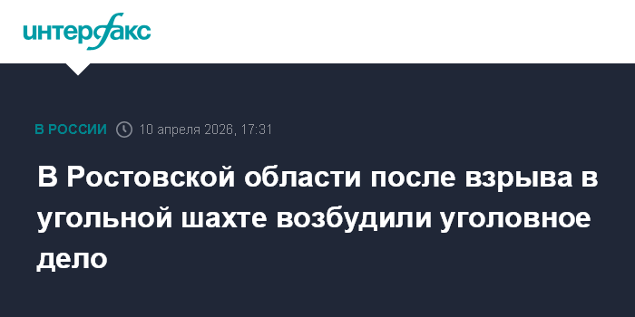 "По данным следствия, 10 апреля 2026 года при проведении работ по заряжению забоя монтажной камеры в шахте, расположенной в Красносулинском районе, произошел хлопок. В результате происшествия один из работников погиб, троим оказывается медицинская помощь. Дело возбуждено по ч. 2 ст. 217 УК (нарушение требований промышленной безопасности опасных производственных объектов)", - говорится в сообщении.