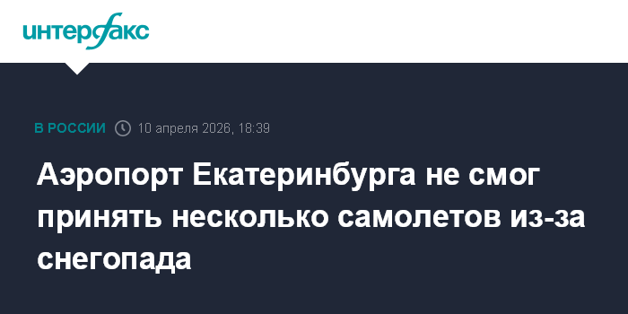 Москва. 10 апреля. INTERFAX.RU - Аэропорт Екатеринбурга "Кольцово" не смог принять несколько самолетов из-за сильного снегопада и похолодания, сообщила пресс-служба аэропорта.