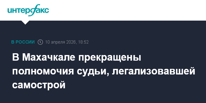 Ранее в объединенной пресс-службе судов республики сообщили "Интерфаксу", в 2013 году Махатилова узаконила построенный в Махачкале дом, который в апреле 2026 года частично обрушился из-за наводнения.
