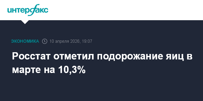 Наибольшие темпы роста (за исключением плодоовощной продукции) в марте показали яйца, подорожавшие на 10,3%. Рост ускорился с 9,3% в феврале. С начала года яйца стали дороже на 21,9%, по сравнению с мартом 2025 года - на 3,1%.
